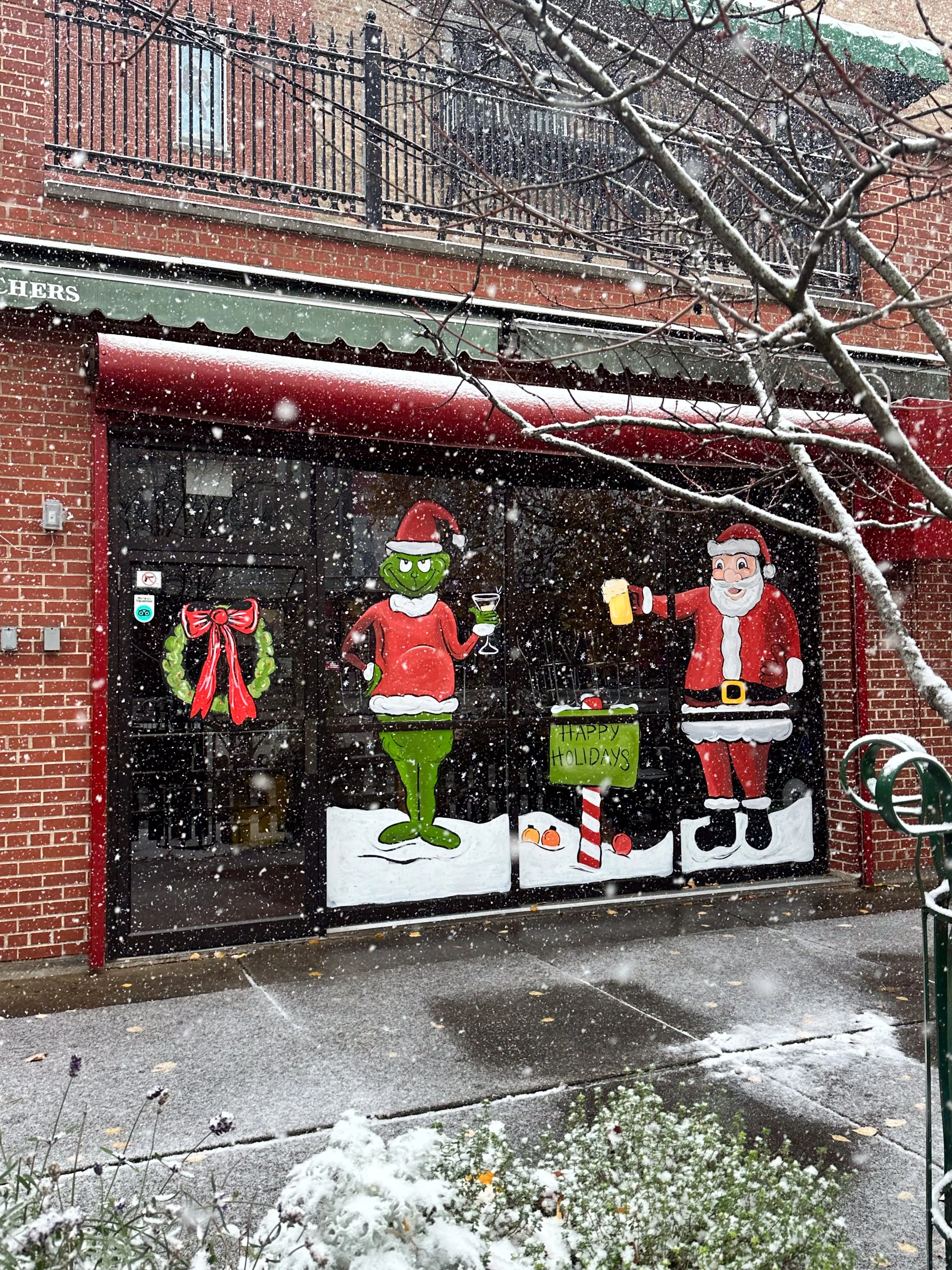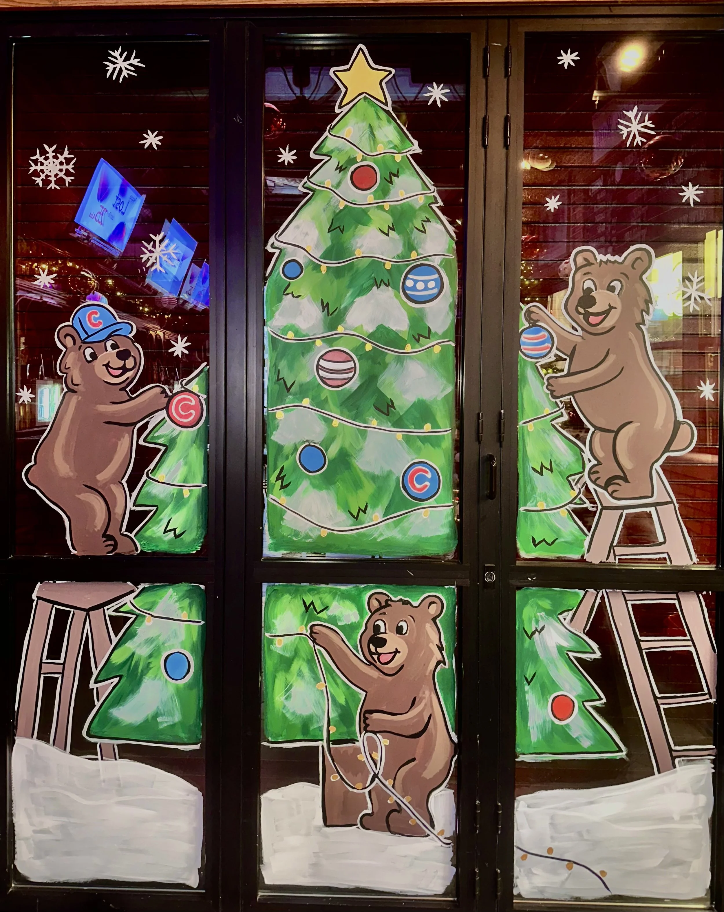 Located right across from Wrigley Field, these fun custom window paintings brought seasonal charm to Murphy’s Bleachers two years in a running